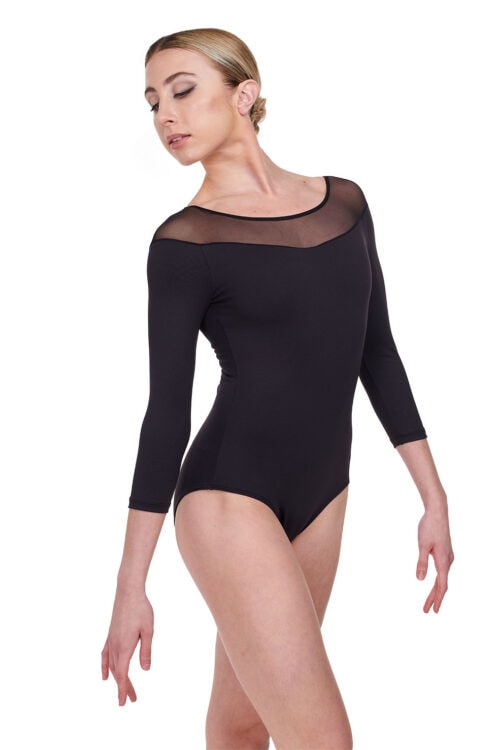 Clara 3/4 Sleeve Leotard with Mesh Yoke - 31662