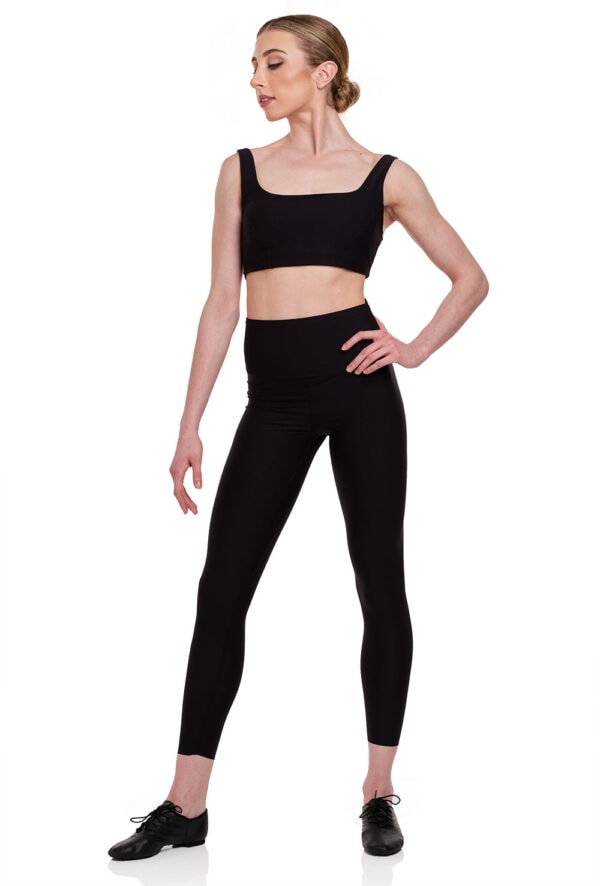 Super luxe quality and worthy of the toughest workout, these gym style leggings are the on-trend 7/8 ankle-skimming length and coordinate with Bloch’s (ZC01802) Square Neck Bra Top with Removable Padding