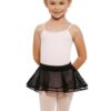 Girls double layer heart mesh ballet skirt with contoured hemline and elasticated pull-on waistband. 90% nylon 10% spandex.