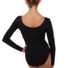Basic long sleeve leotard with scoop neck and full front lining. 90% nylon 10% spandex.