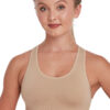 Feel confident in Capezio’s racer back sports bra with it’s double layer fabric for dependable hold and its strategically placed ribbing for a flattering contour of the bust
